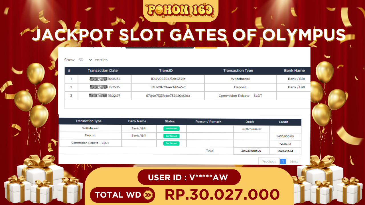 BUKTI JP POHON169 SEBESAR 30.027.000 RUPIAH (GATES OF OLYMPUS)