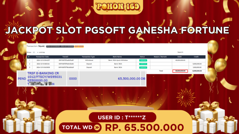 BUKTI PEMBAYARAN POHON169 SEBESAR 65,500,000.00 RUPIAH (SLOT PGSOFT GANESHA FORTUNE)