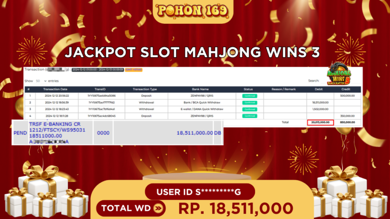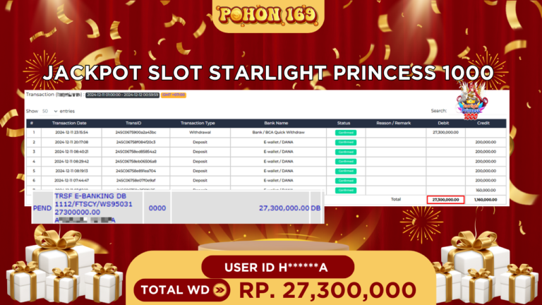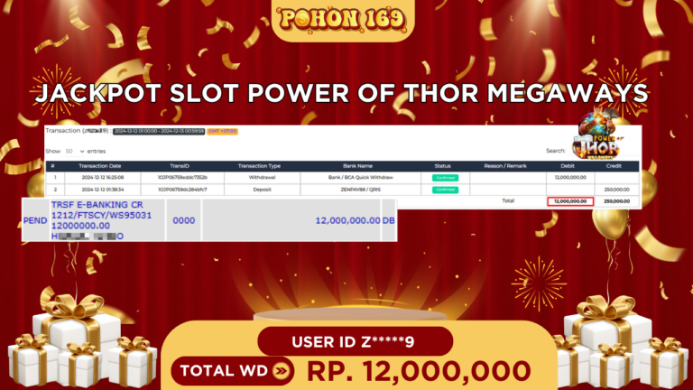 Bukti Pembayaran POHON169: Kemenangan Anda Dijamin 100% Dibayar Penuh! POHON169: Situs Slot Online Terpercaya dan Terbukti Membayar Kami dengan bangga mempersembahkan bukti pembayaran kepada member kami dengan userid T*****Z, yang berhasil mendapatkan Jackpot (JP)…