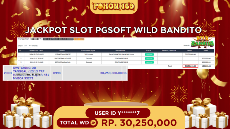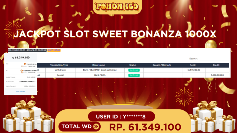 BUKTI PEMBAYARAN POHON169 SEBESAR 61,349,100.00 RUPIAH (SLOT SWEET BONANZA 1000X)