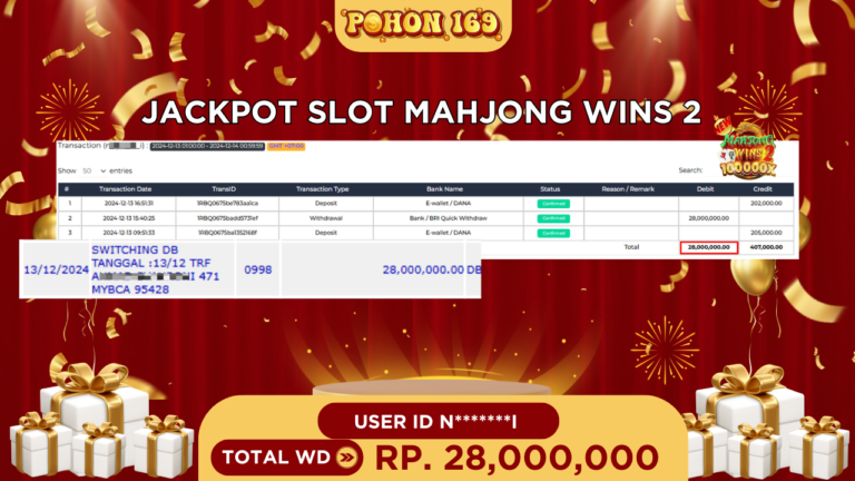 Bukti Pembayaran POHON169: Kemenangan Anda Dijamin 100% Dibayar Penuh! POHON169: Situs Slot Online Terpercaya dan Terbukti Membayar Kami dengan bangga mempersembahkan bukti pembayaran kepada member kami dengan userid Y*****8, yang…