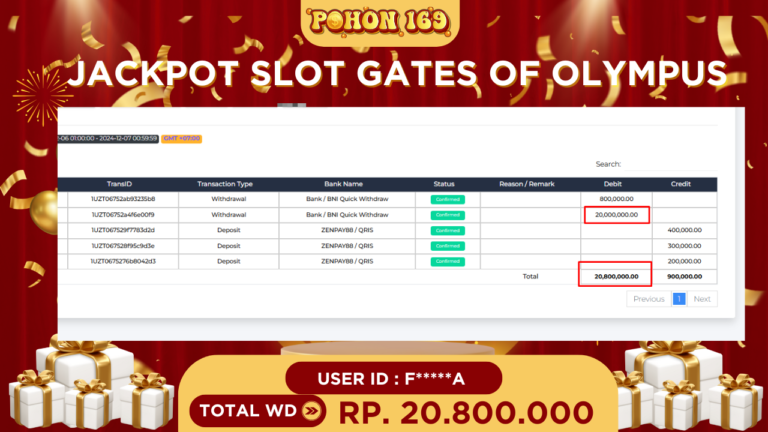 BUKTI JP POHON169: SEBESAR 20.800.000 RUPIAH (GATES OF OLYMPUS)