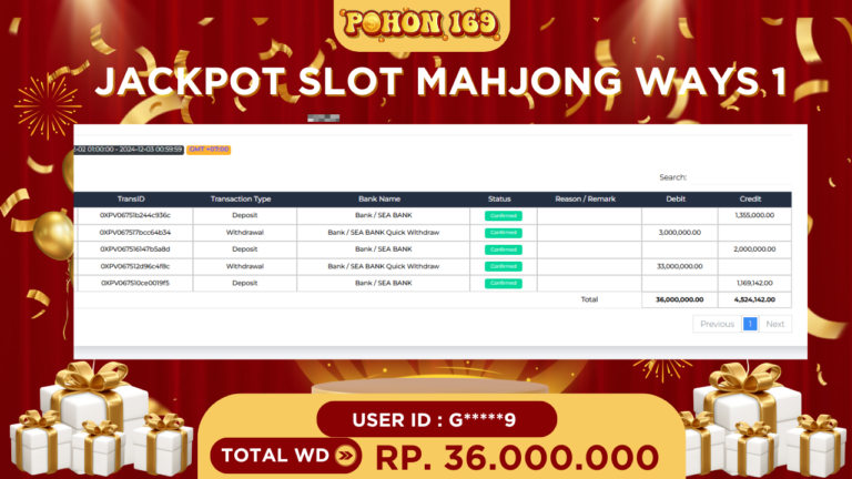 Bukti Pembayaran POHON169: Kemenangan Anda Dijamin 100% Dibayar Penuh! POHON169: Situs Slot Online Terpercaya dan Terbukti MembayarKami dengan bangga mempersembahkan bukti pembayaran kepada member kami dengan userid B*****2, yang berhasil…