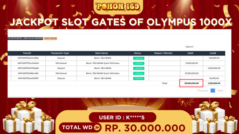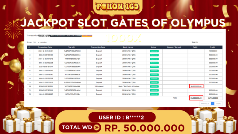 BUKTI JP POHON169: SEBESAR 50.000.000 RUPIAH ( GATES OF OLYMPUS)